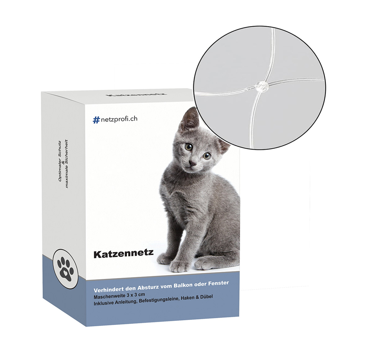 Katzen lieben es in der Sonne zu liegen, zu faulenzen und die Umgebung genau zu beobachten. Zum Schutz Ihrer Katze sollten Balkone und Terassen besonders gesichert werden. Dieses Schutznetz für Innen und Aussen eignet sich durch seine Maschenweite von nur 3 × 3 cm auch für kleine Katzen.
