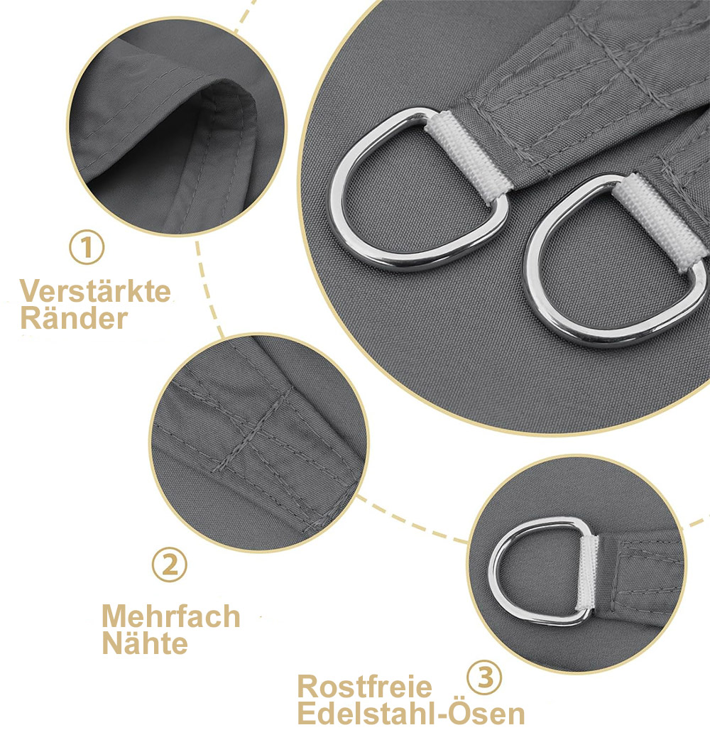 Unsere Sonnensegel sind aus hochwertigem 300D Polyester produziert.